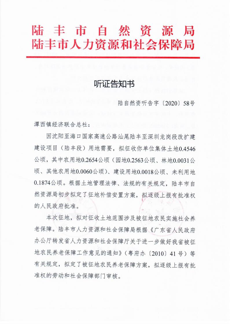 听证告知书(陆自然资听告字[2020]58号)