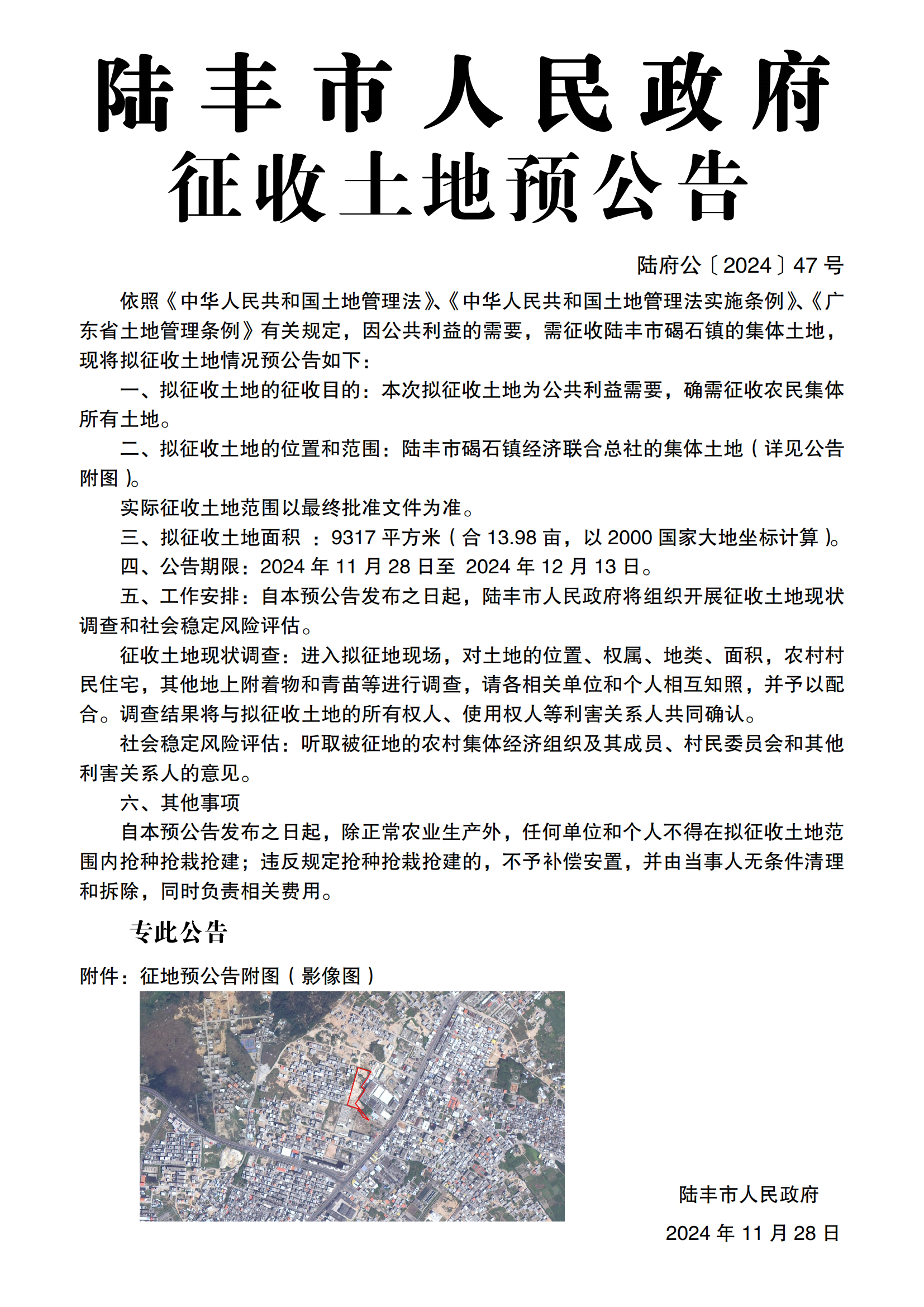 苹果直播 关于征收土地预公告(陆府公〔2024〕47号)
