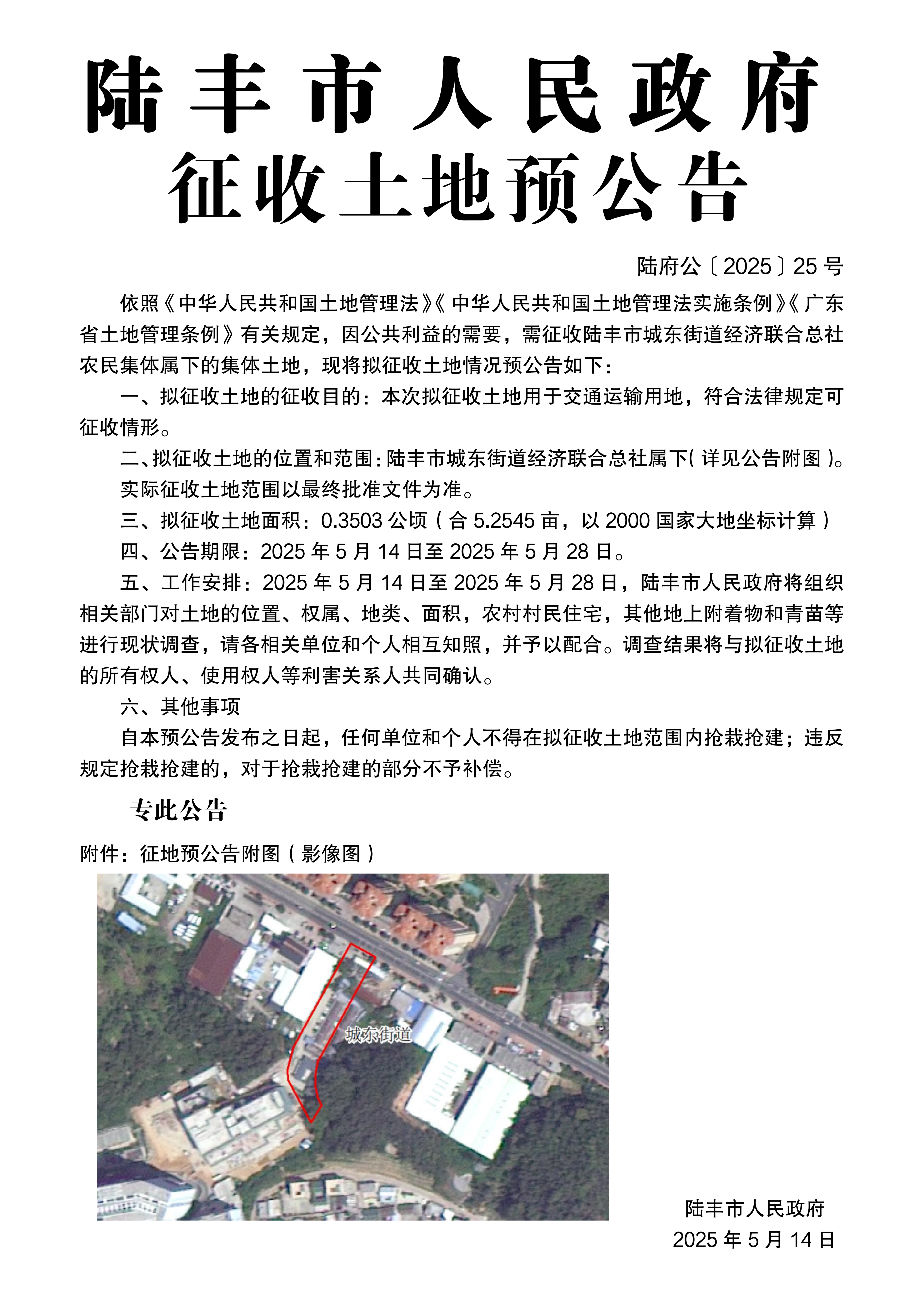 苹果直播 关于征收土地预公告(陆府公〔2025〕25号)