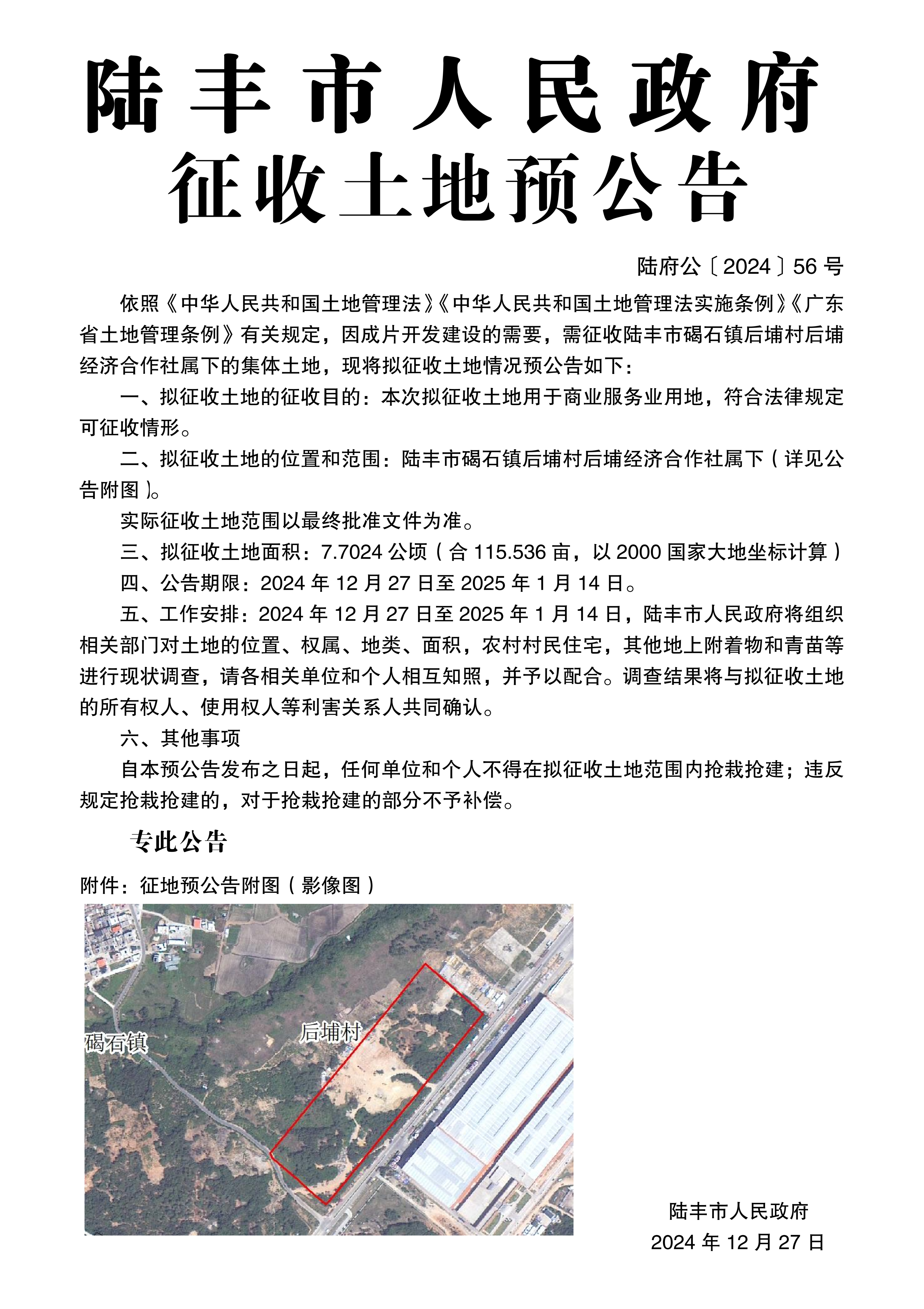苹果直播 征收土地预公告(陆府公〔2024〕56号)