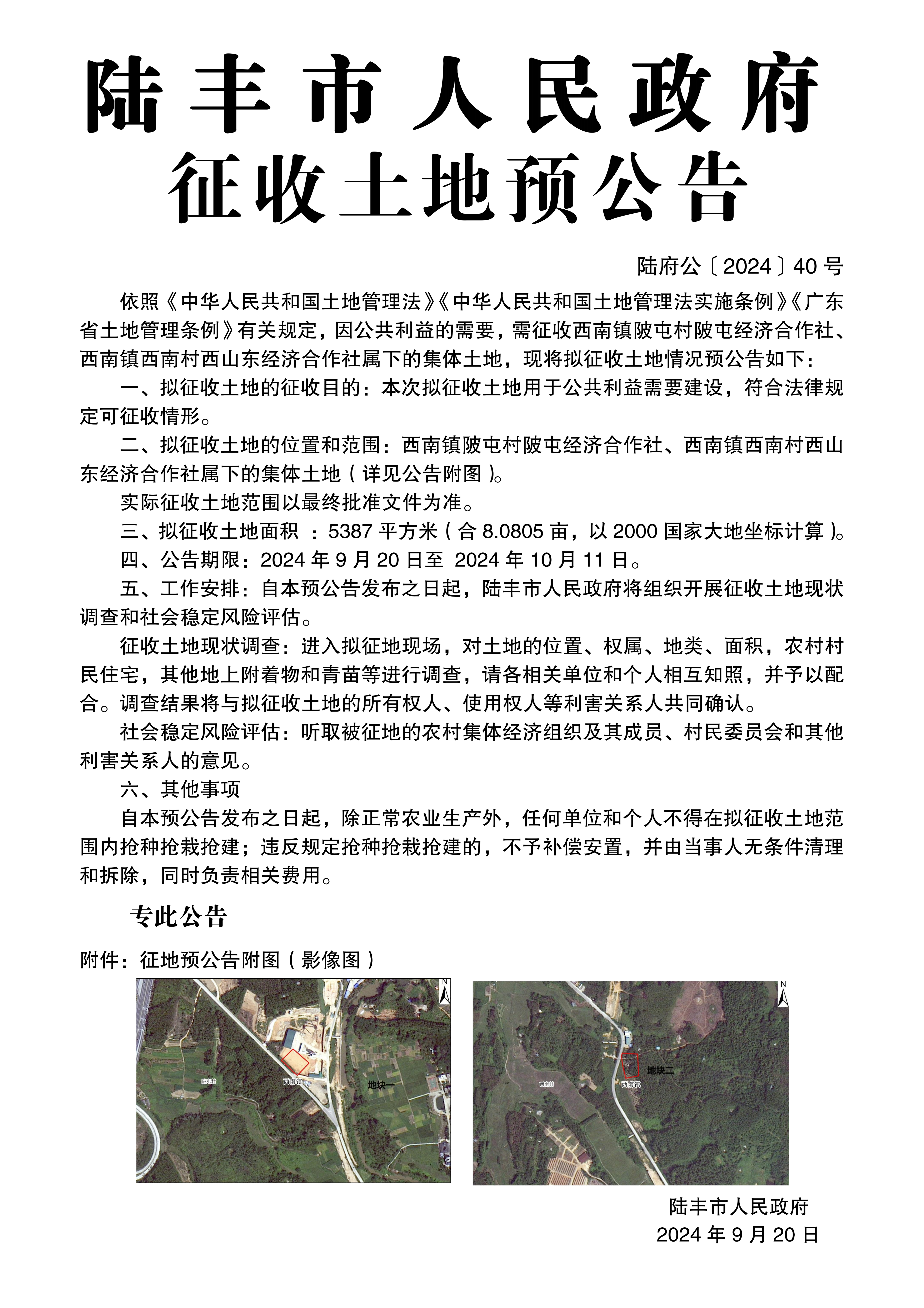 苹果直播 关于征收土地预公告(陆府公〔2024〕40号)