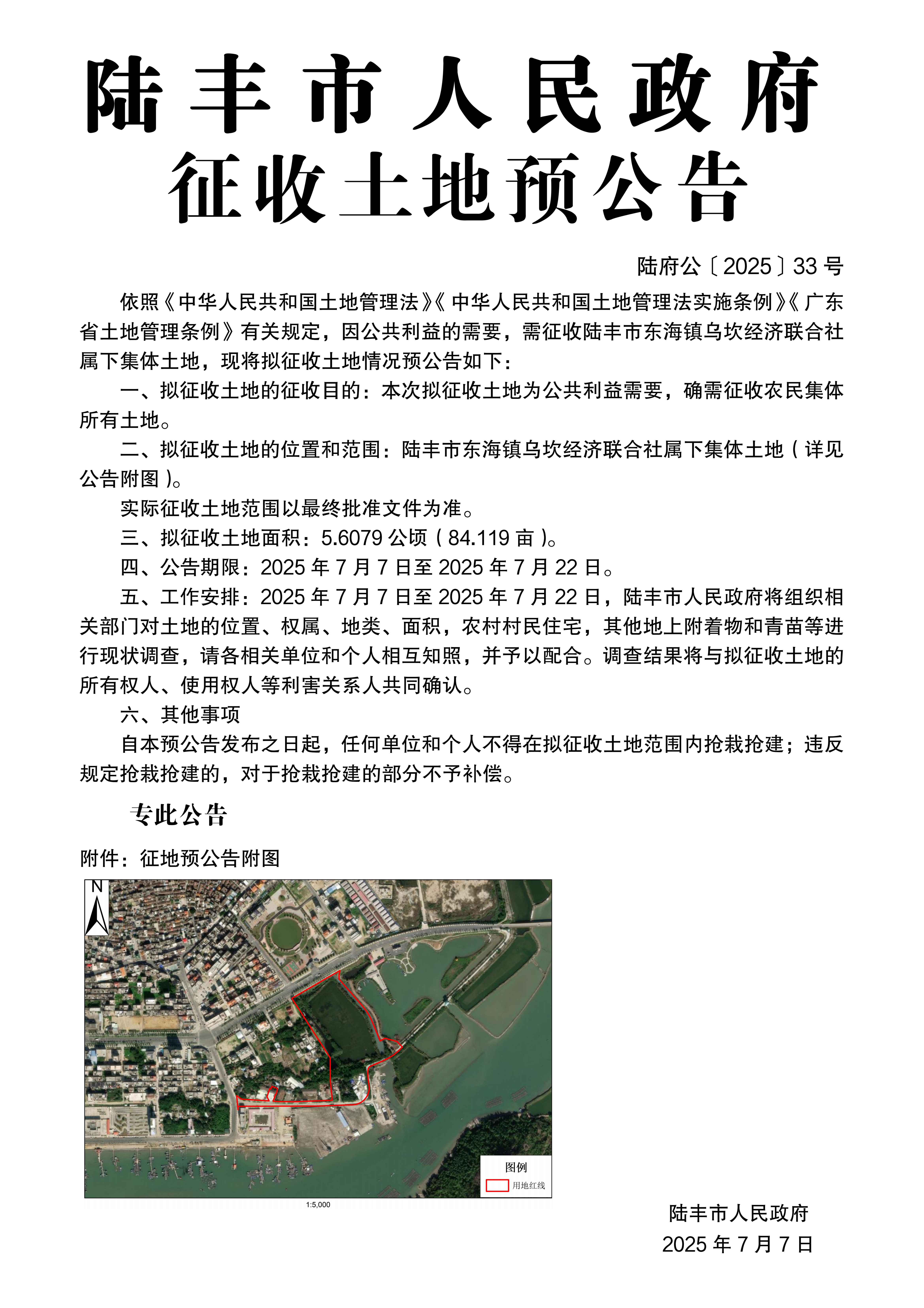 苹果直播 关于征收土地预公告(陆府公〔2025〕33号)