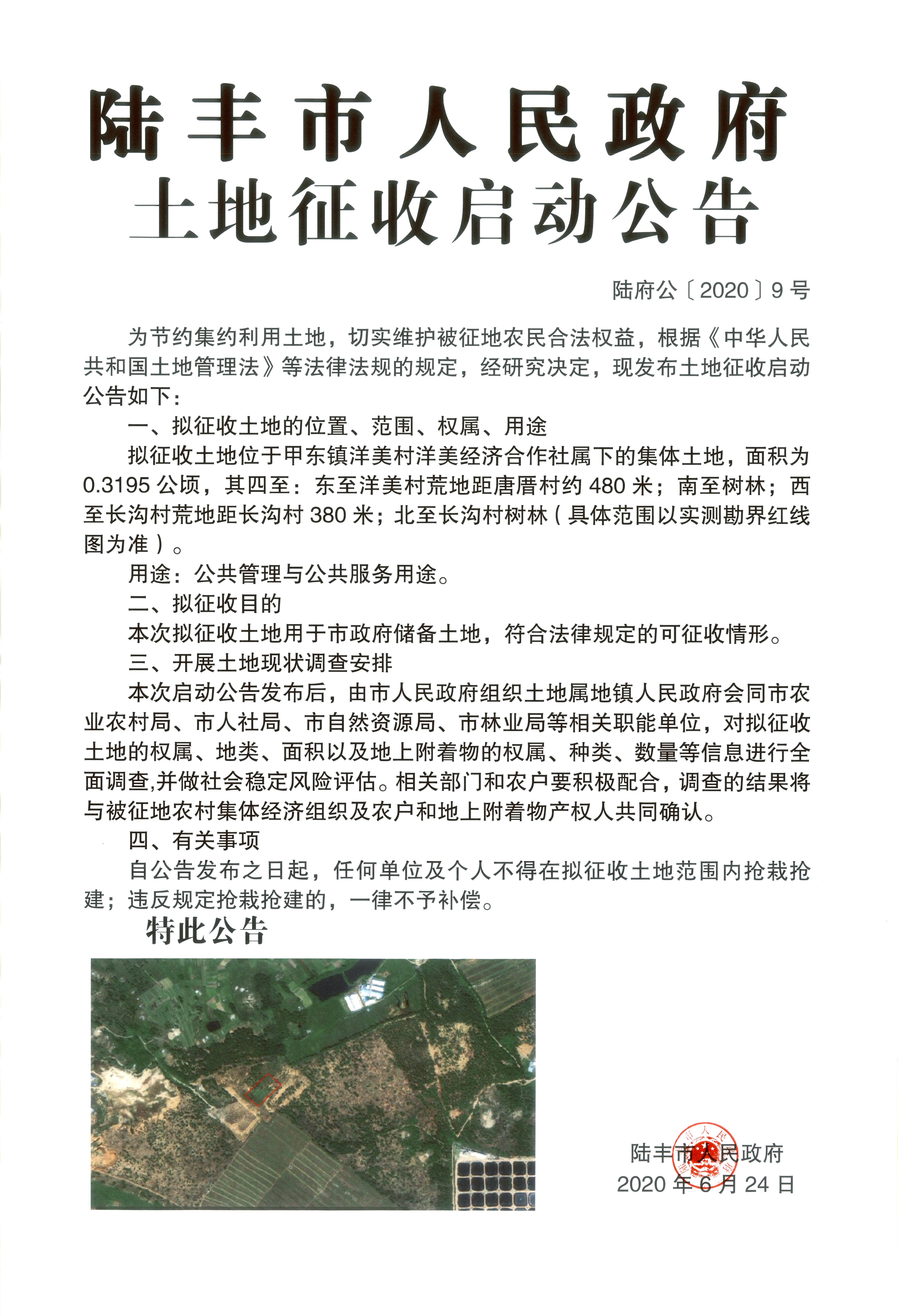 苹果直播 土地征收启动公告(陆府公(2020)9号)