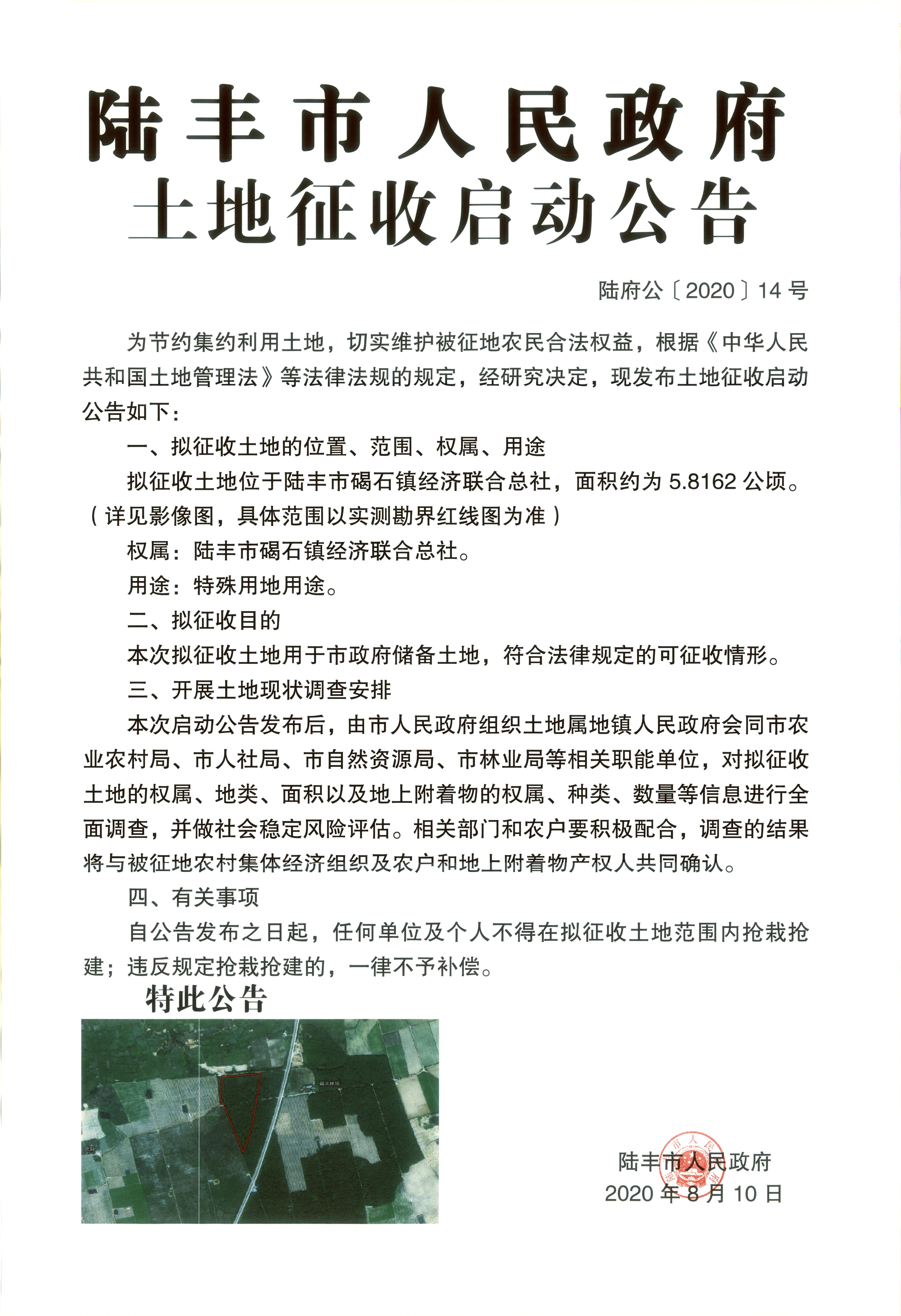 苹果直播 土地征收启动公告(陆府公(2020)14号)