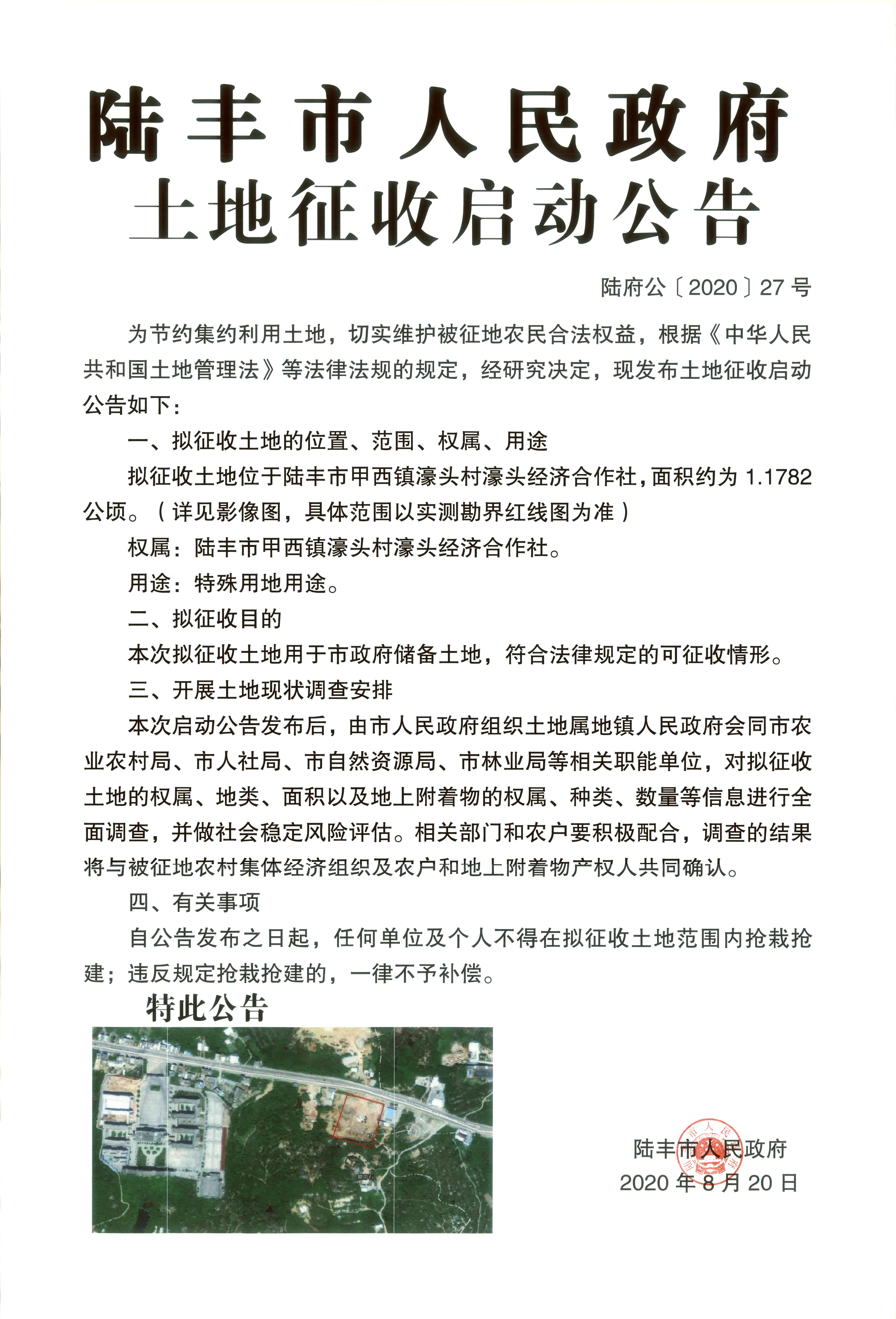 苹果直播 土地征收启动公告(陆府公(2020)27号)