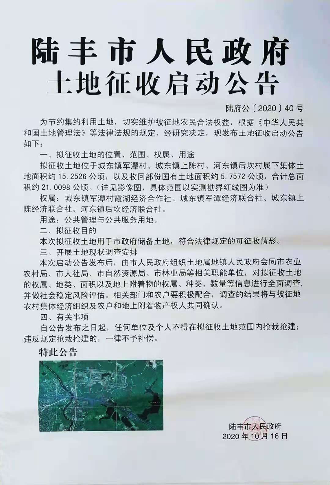 苹果直播 土地征收启动公告-陆府公[2020]40号