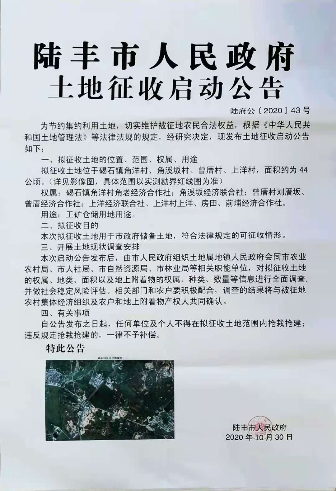 苹果直播 土地征收启动公告-陆府公[2020]43号