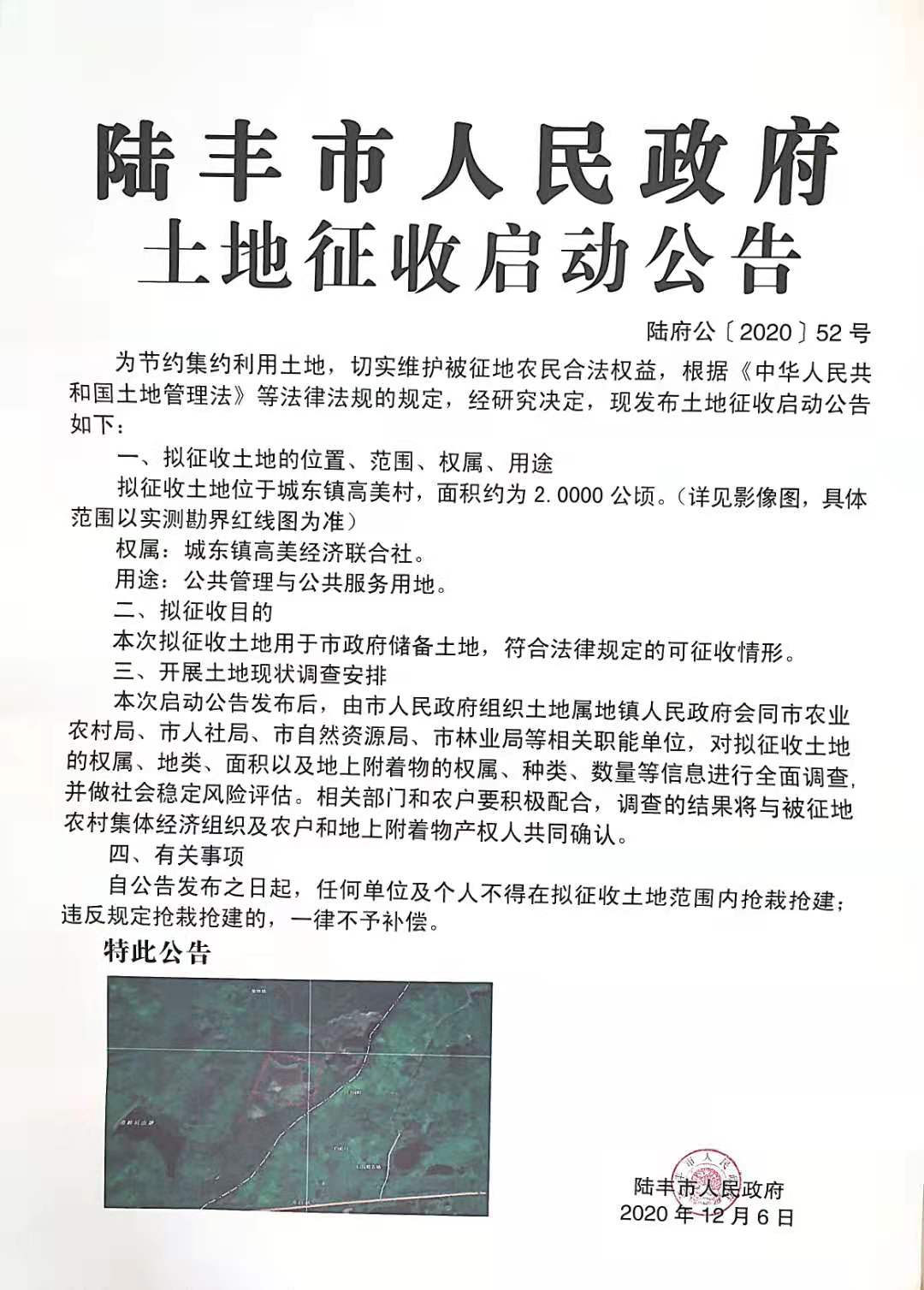 苹果直播 土地征收启动公告(陆府公[2020]52号)
