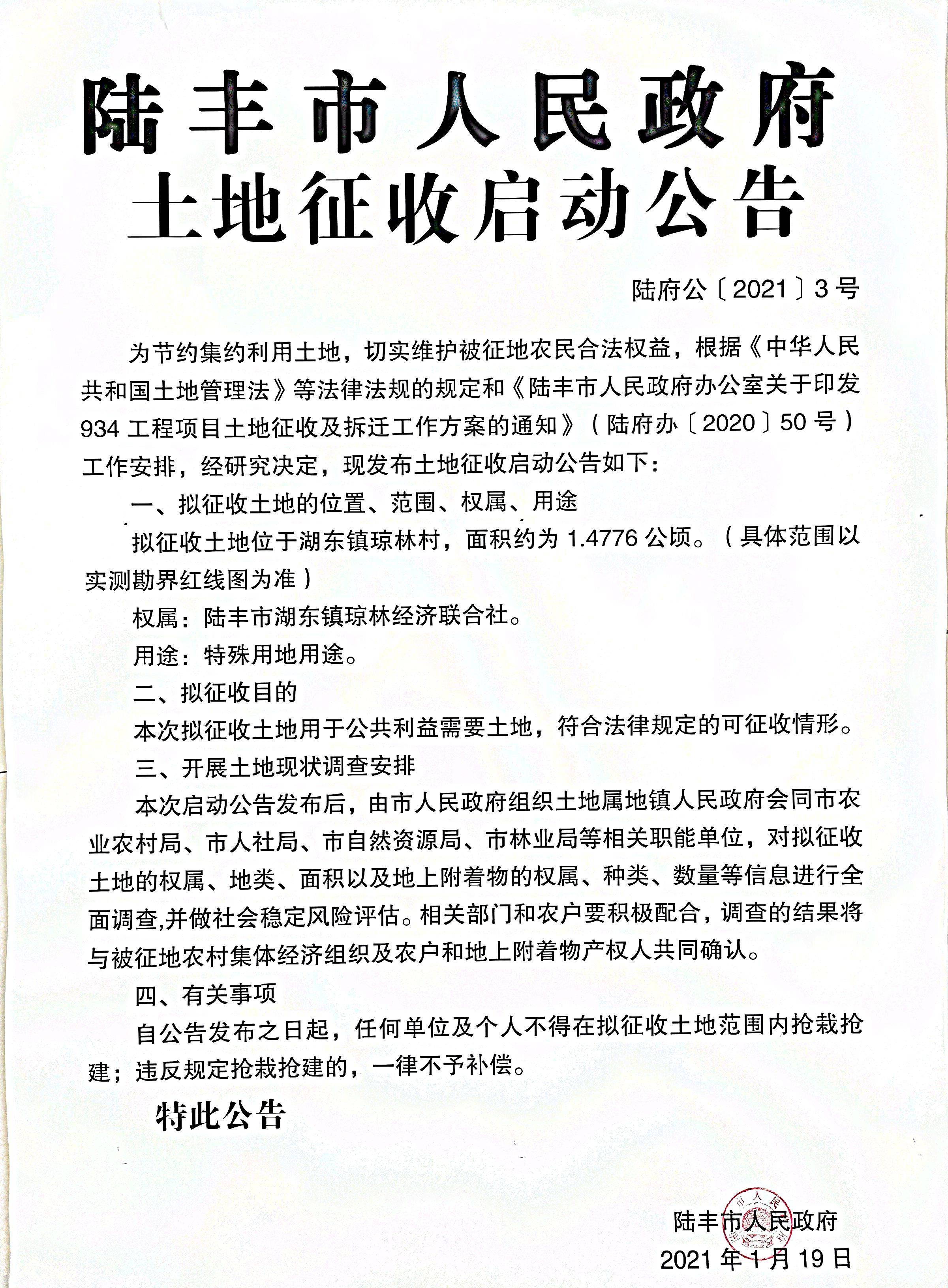 苹果直播 土地征收启动公告(陆府公[2021]3号)