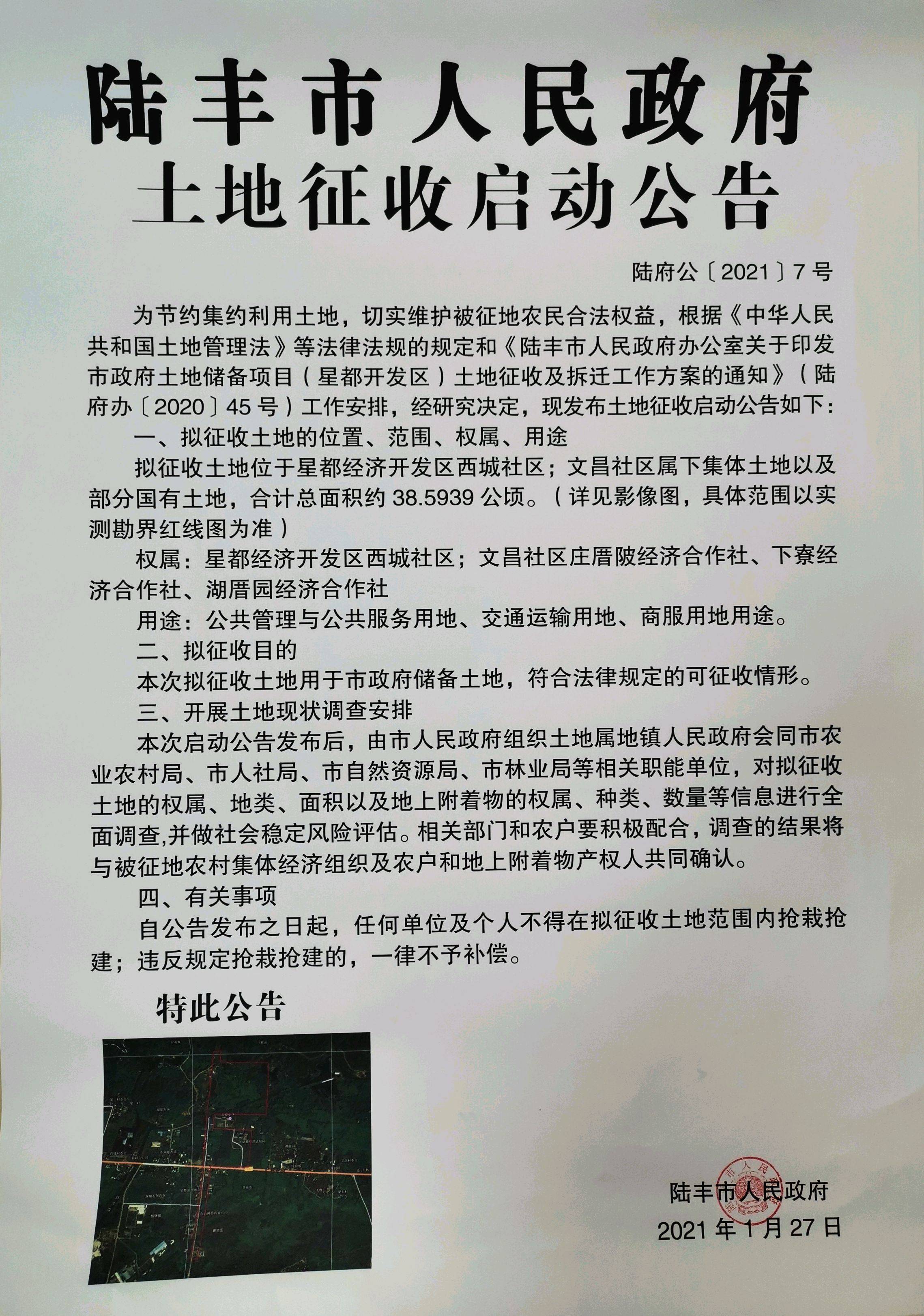 苹果直播 土地征收启动公告(陆府公[2021]7号)