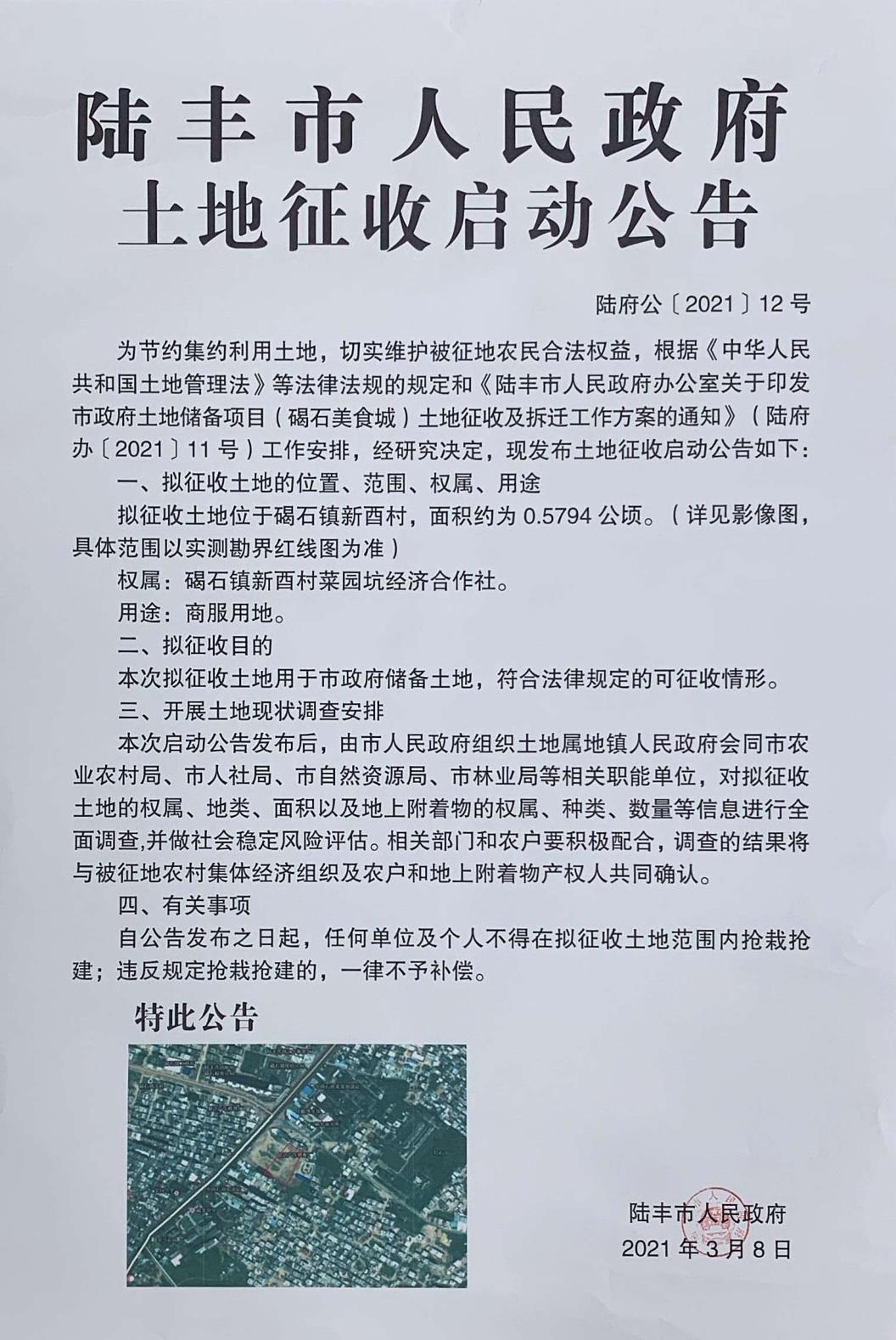 苹果直播 土地征收启动公告(陆府公[2021]12号)
