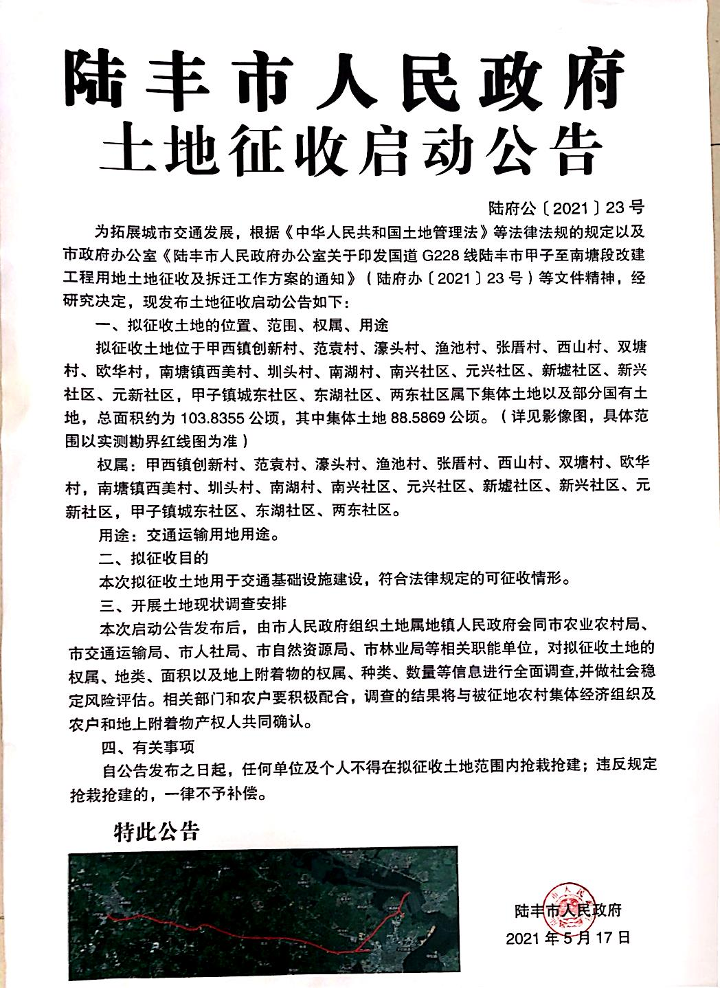 苹果直播 土地征收启动公告(陆府公[2021]23号)