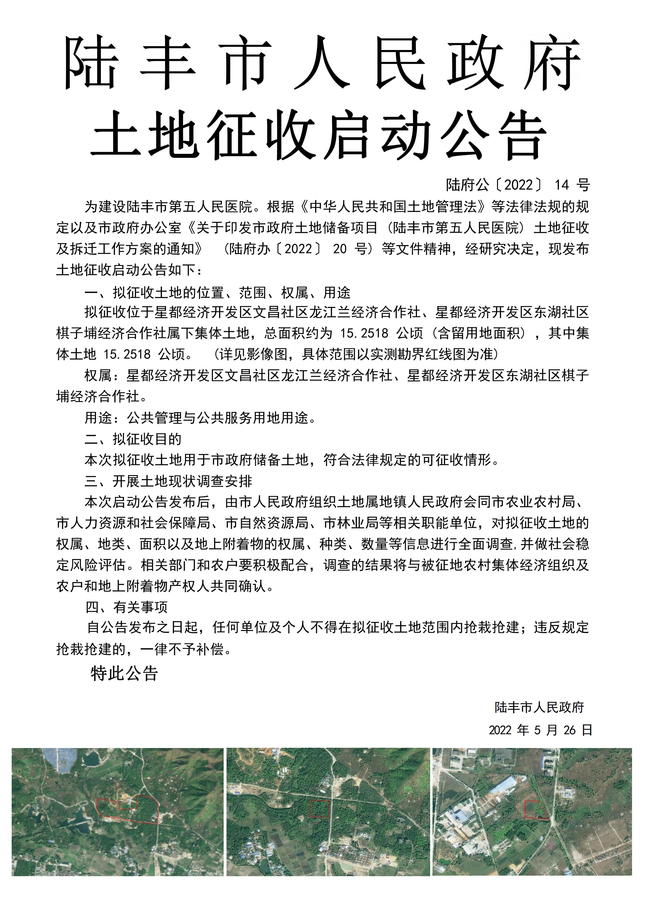 苹果直播 土地征收启动公告(陆府公〔2022〕14号)