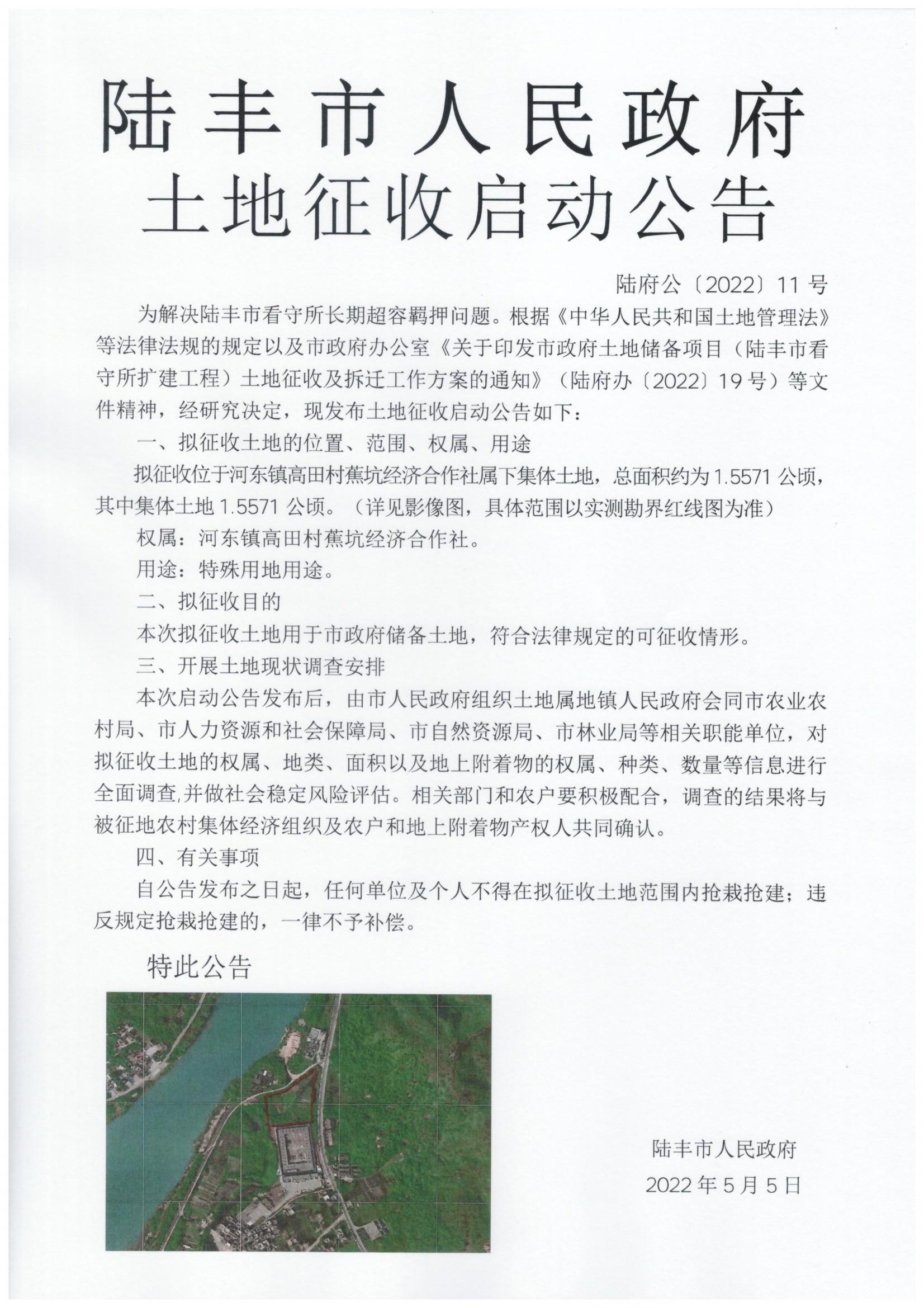 苹果直播 土地征收启动公告(陆府公[2022]11号)