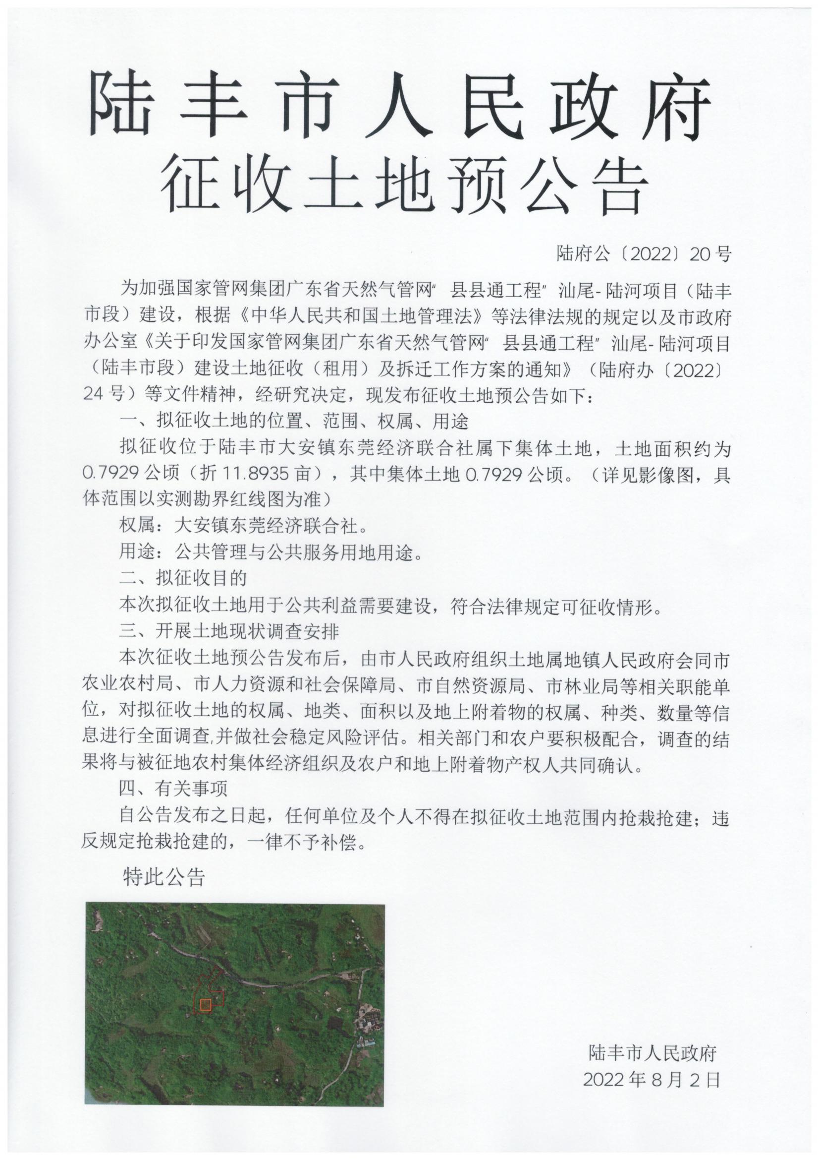 苹果直播 征收土地预公告(陆府公[2022]20号)
