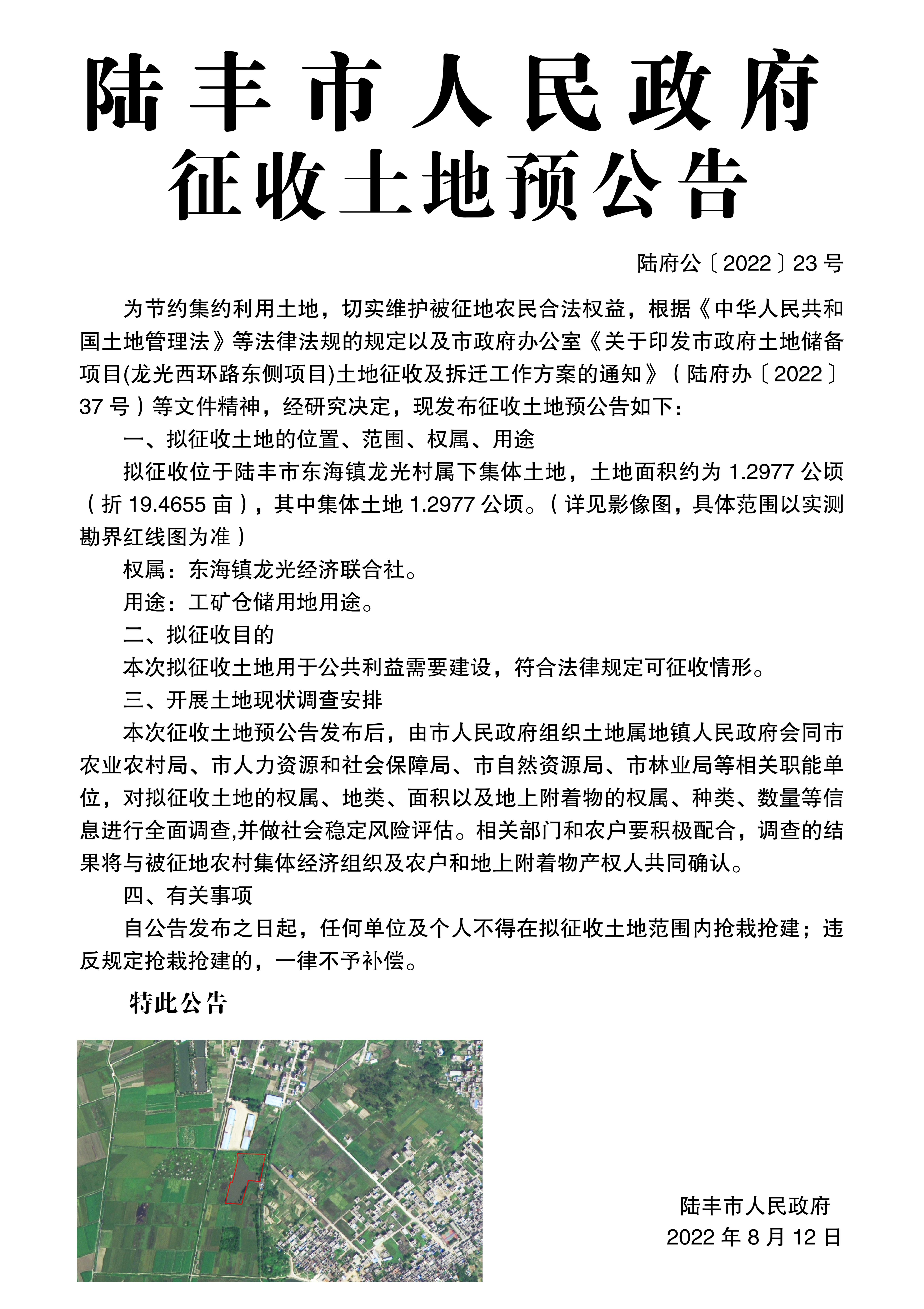 苹果直播 征收土地预公告(陆府公〔2022〕23号)