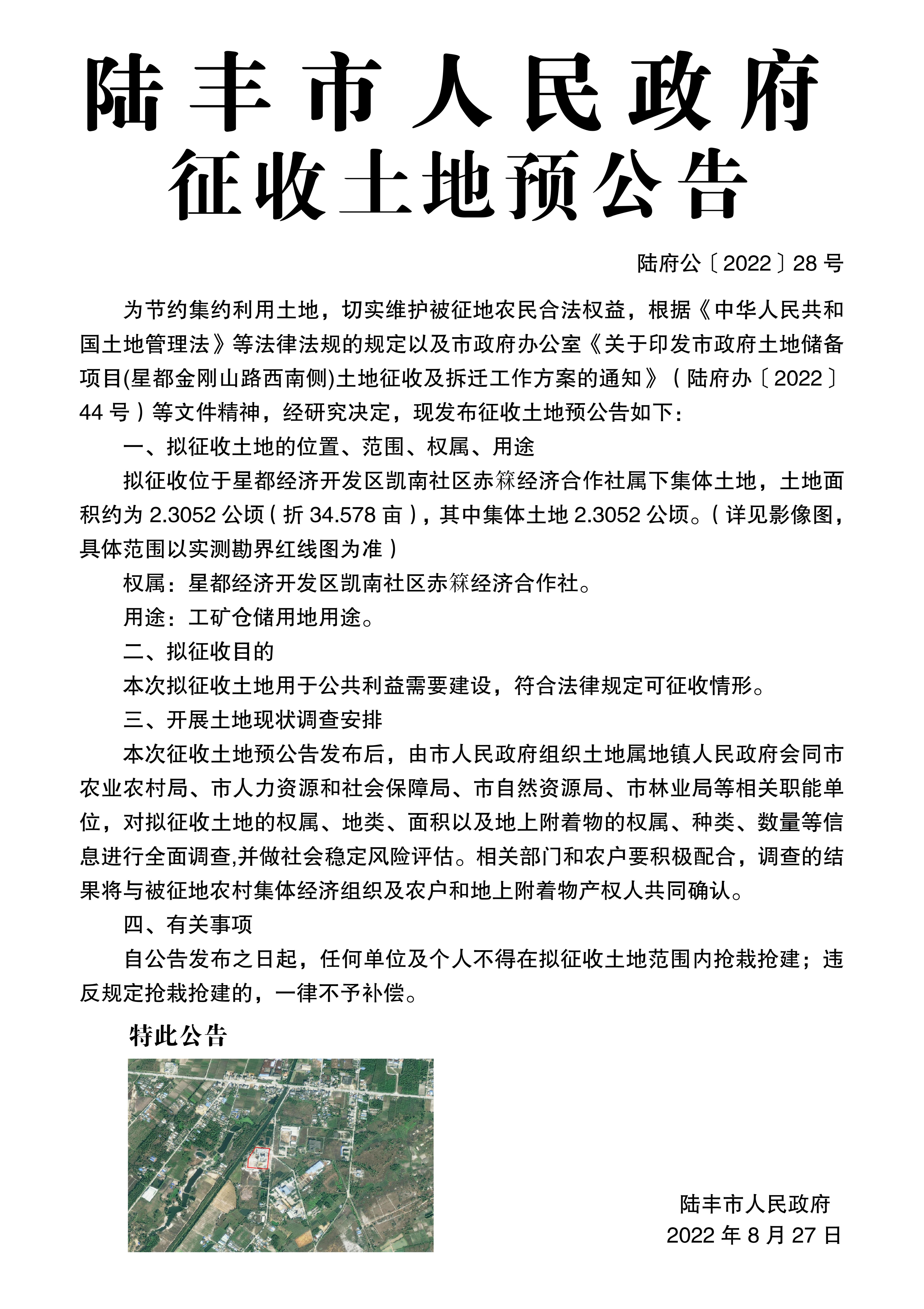 苹果直播 征收土地预公告(陆府公[2022]28号)