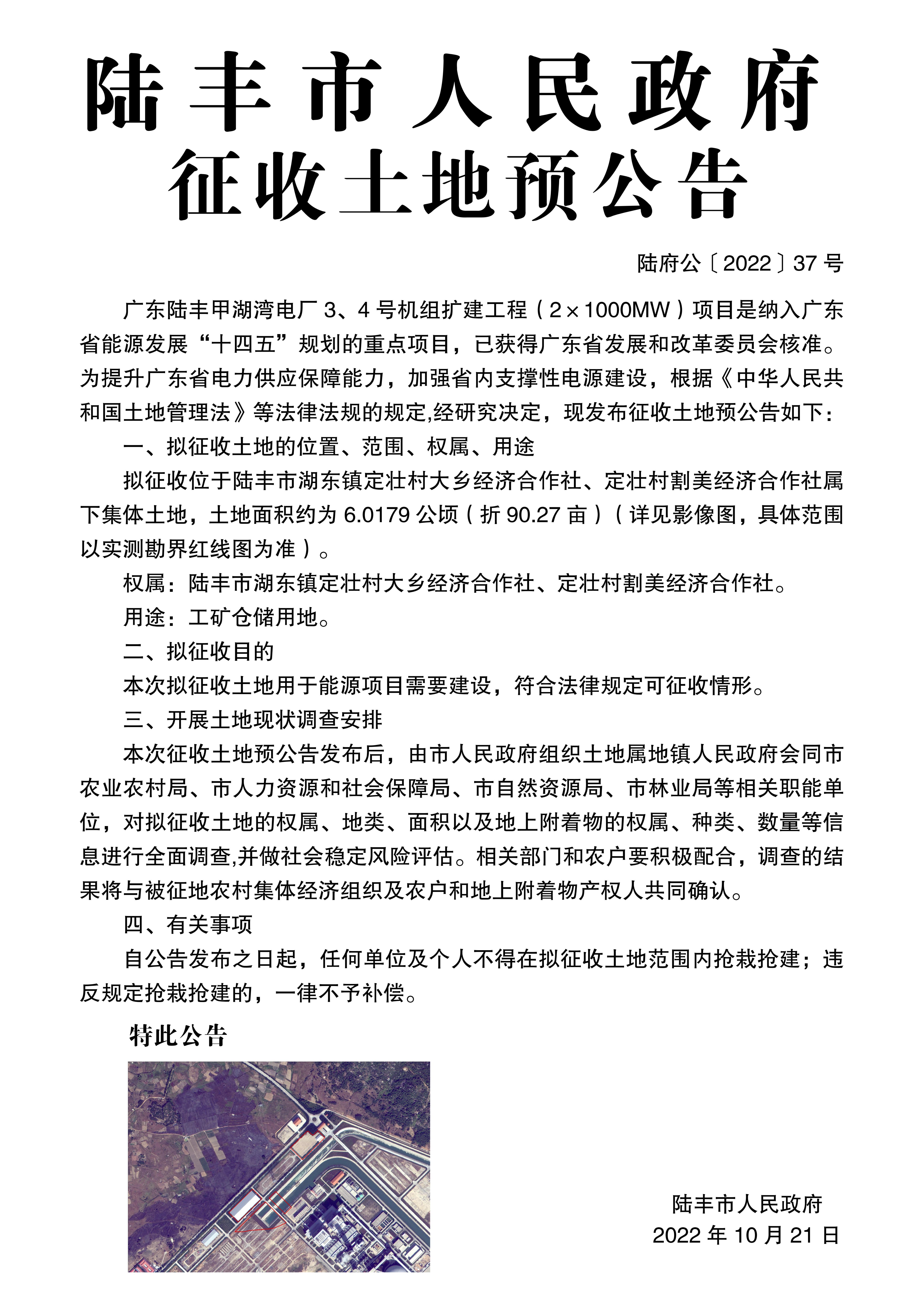 苹果直播 征收土地预公告(陆府公[2022]37号)