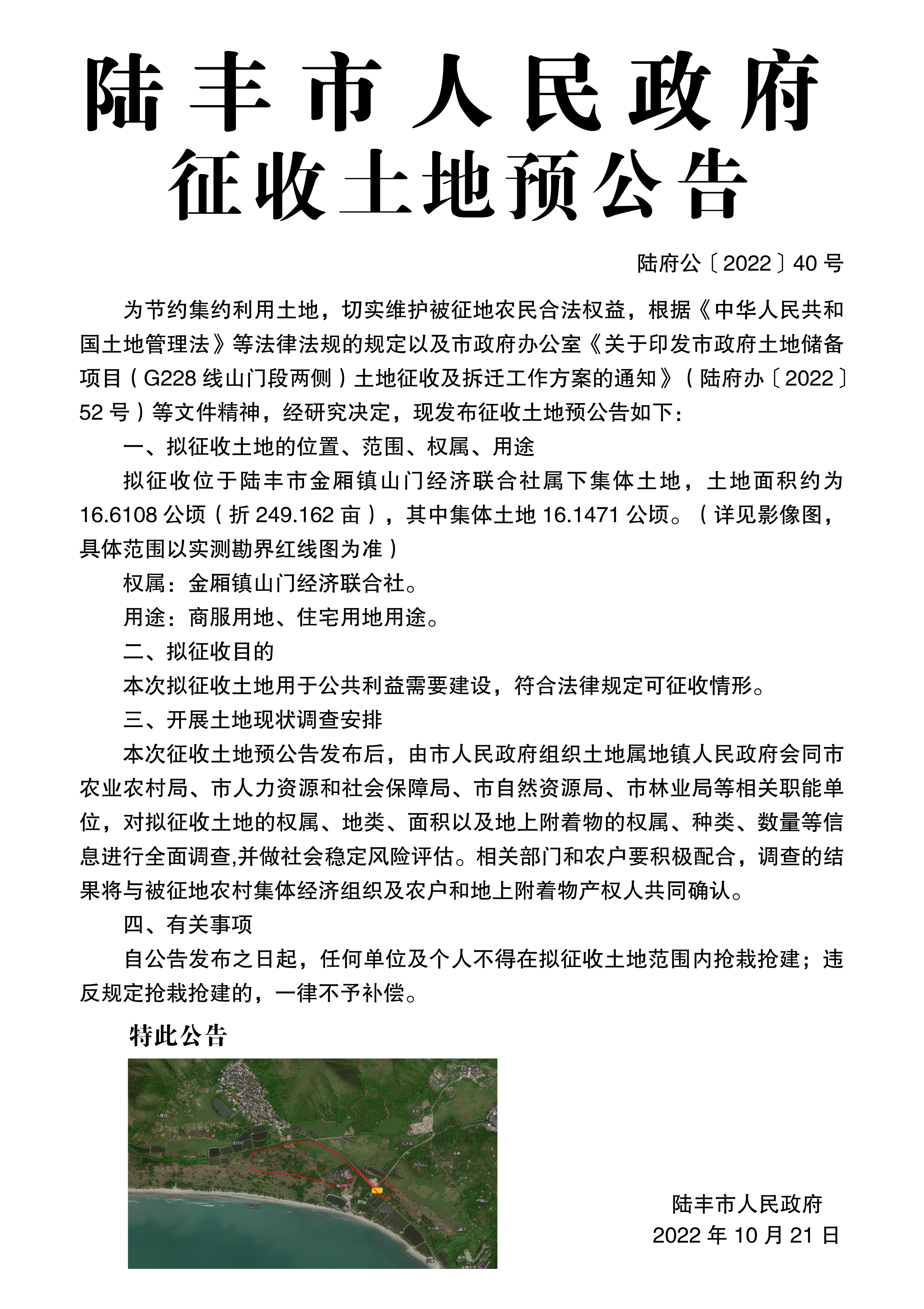 苹果直播 征收土地预公告(陆府公[2022]40号)