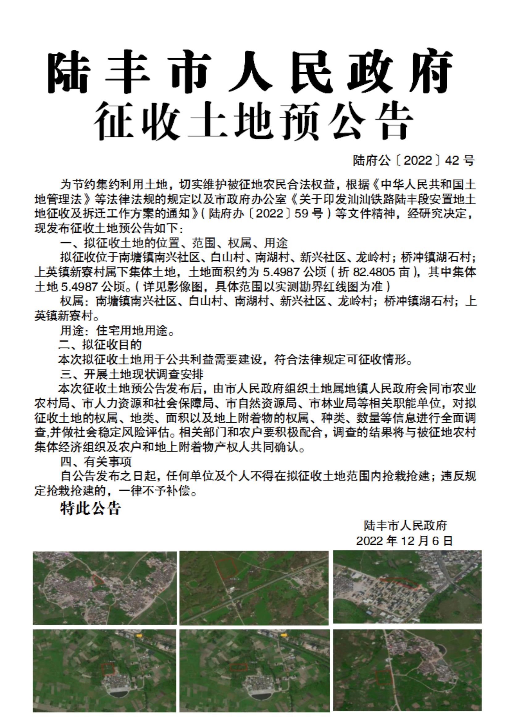 苹果直播 征收土地预公告(陆府公[2022]42号)