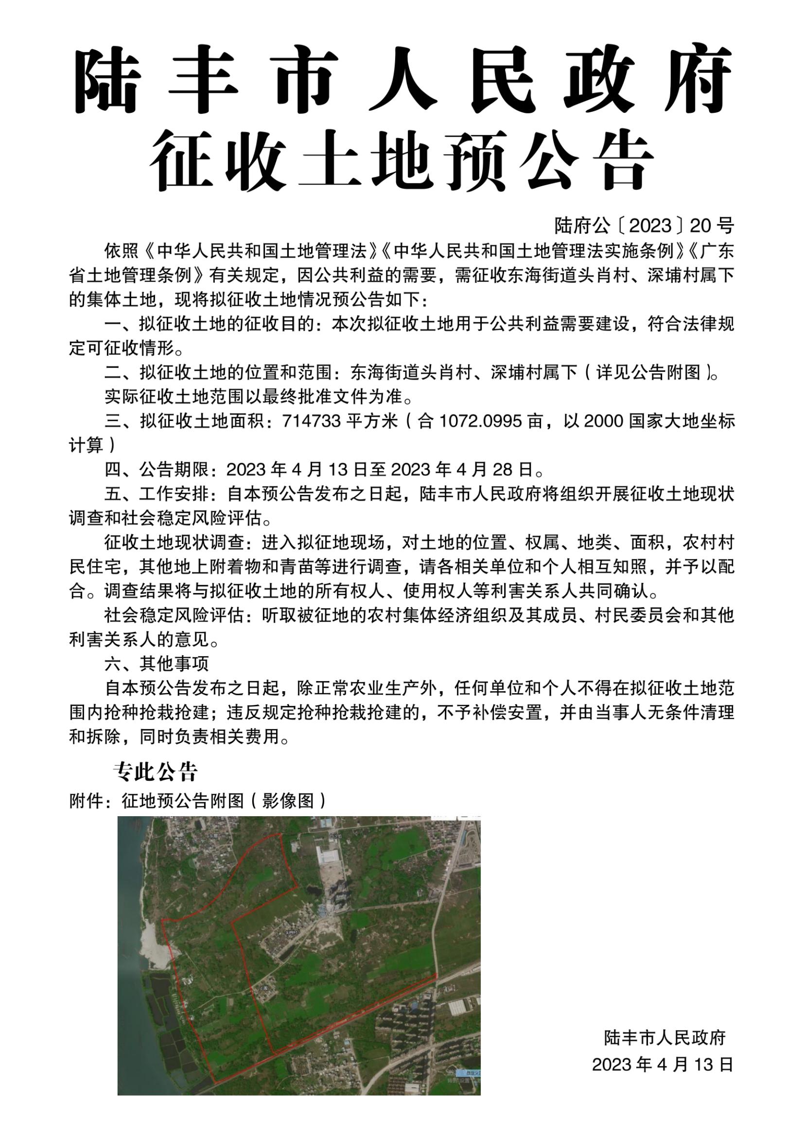 苹果直播 征收土地预公告(陆府公〔2023〕20号)