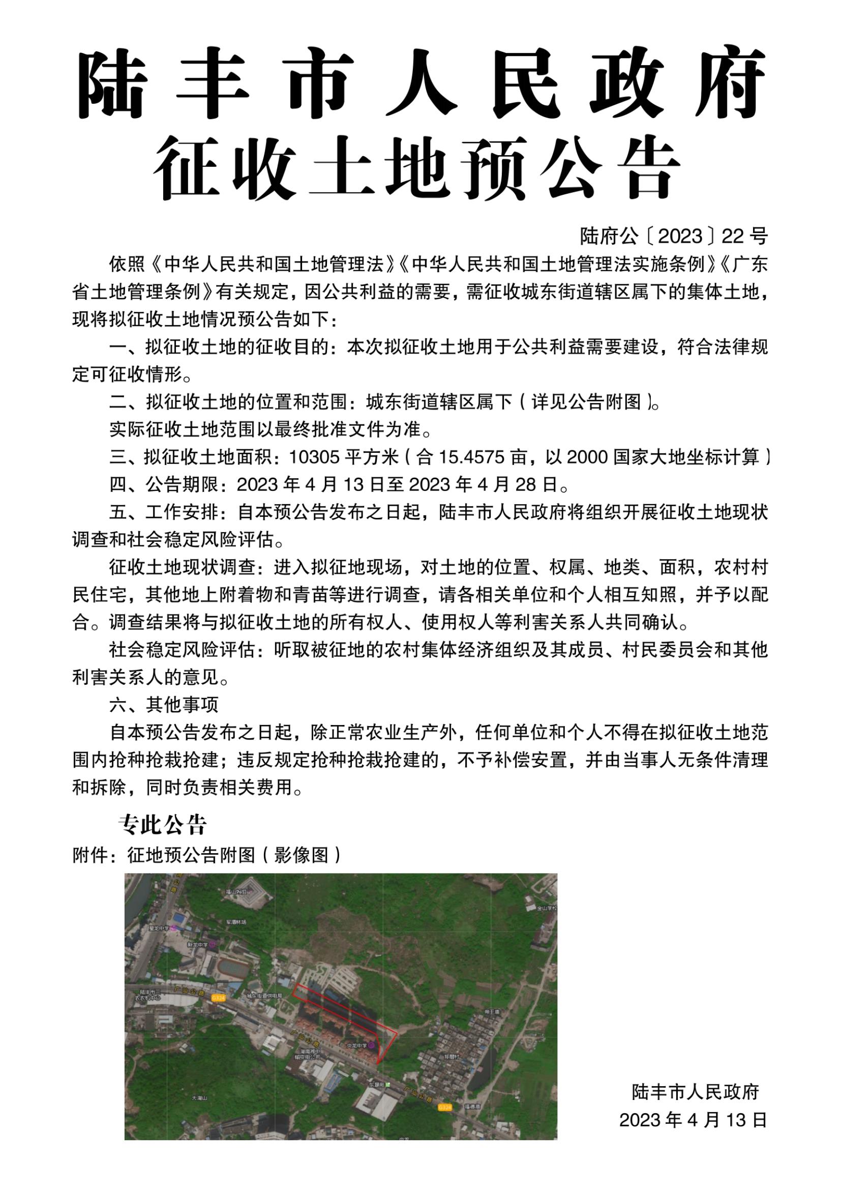 苹果直播 征收土地预公告(陆府公〔2023〕22号)