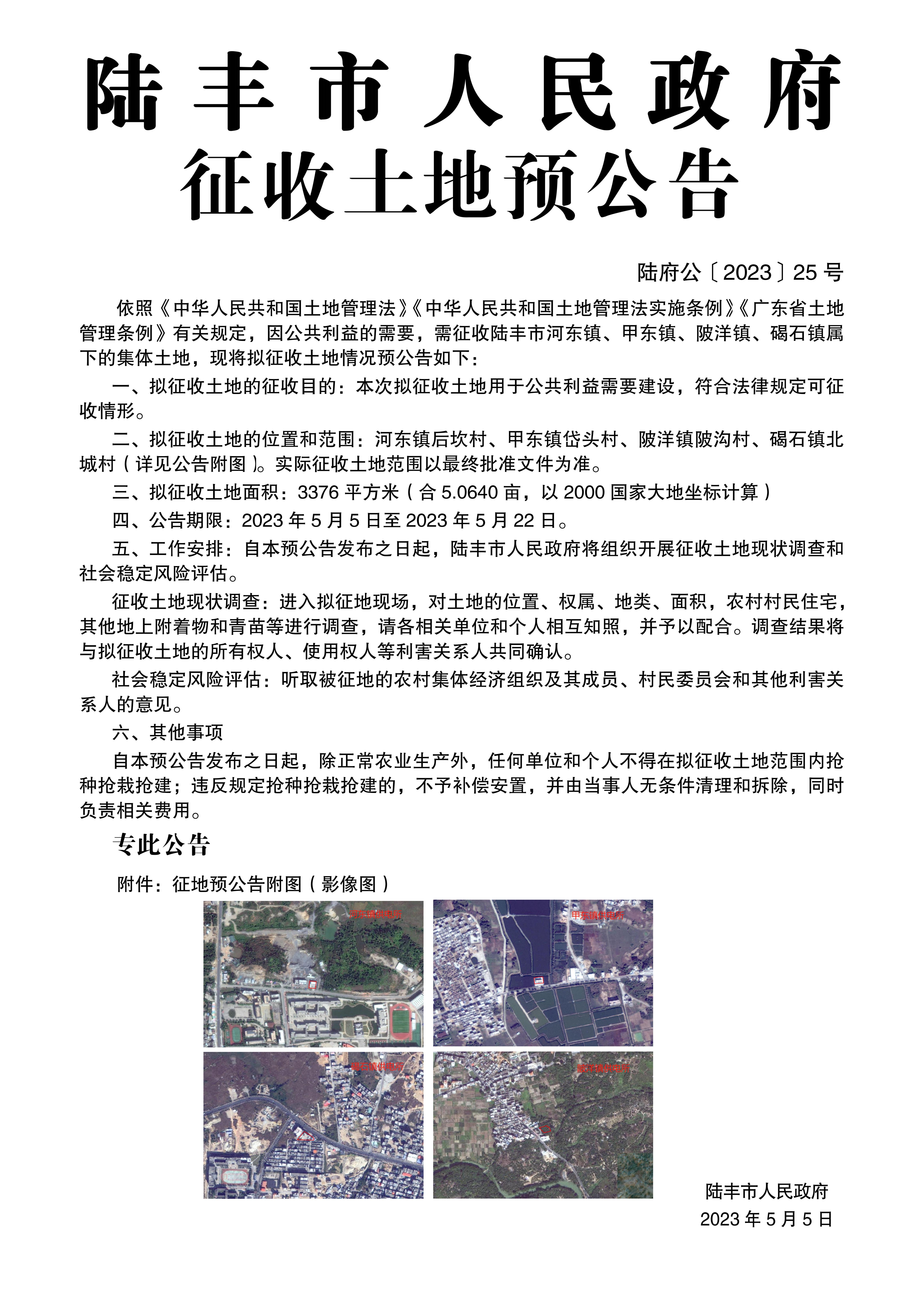 苹果直播 征收土地预公告(陆府公〔2023〕25号)