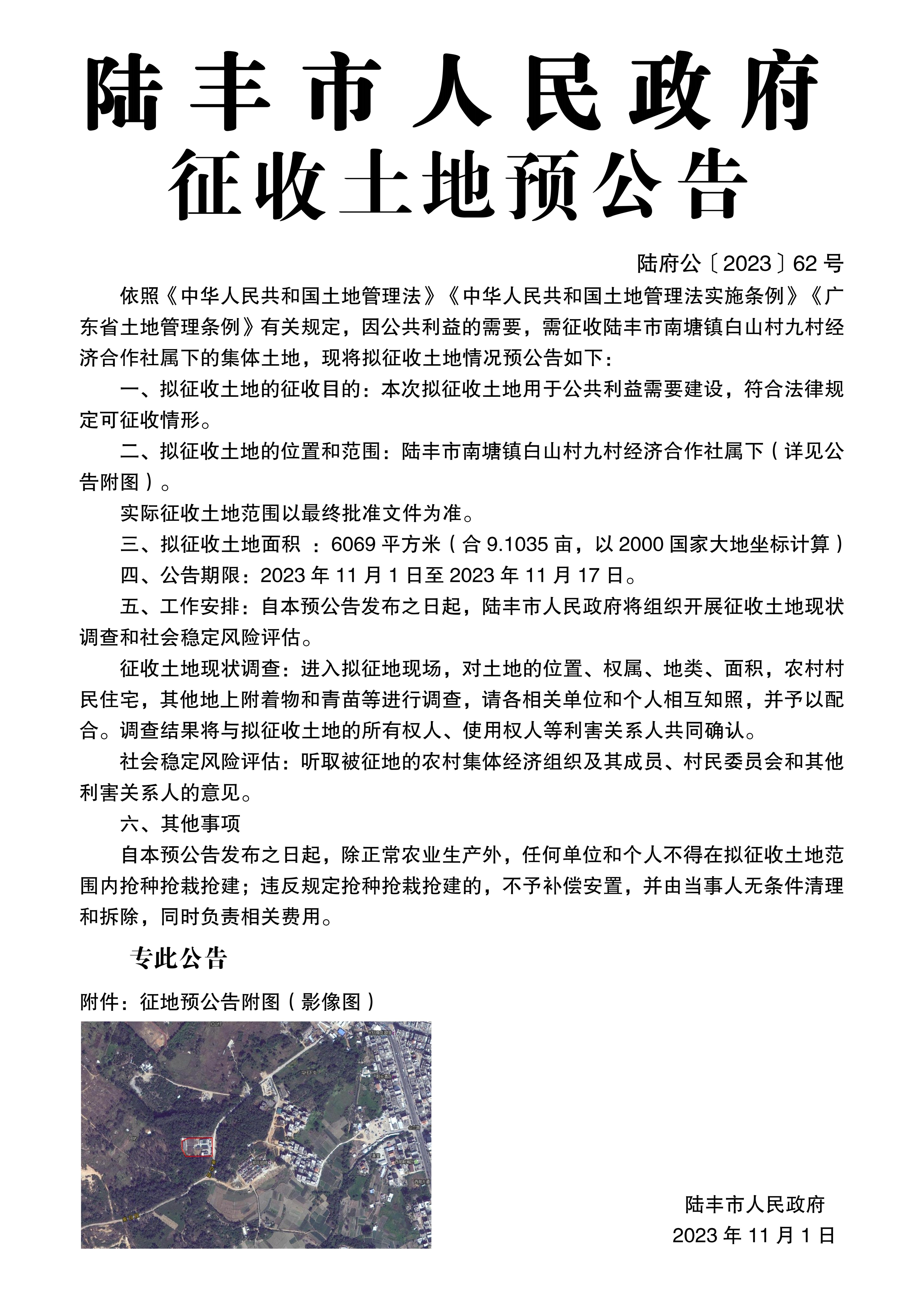 苹果直播 关于征收土地预公告(陆府公〔2023〕62号)