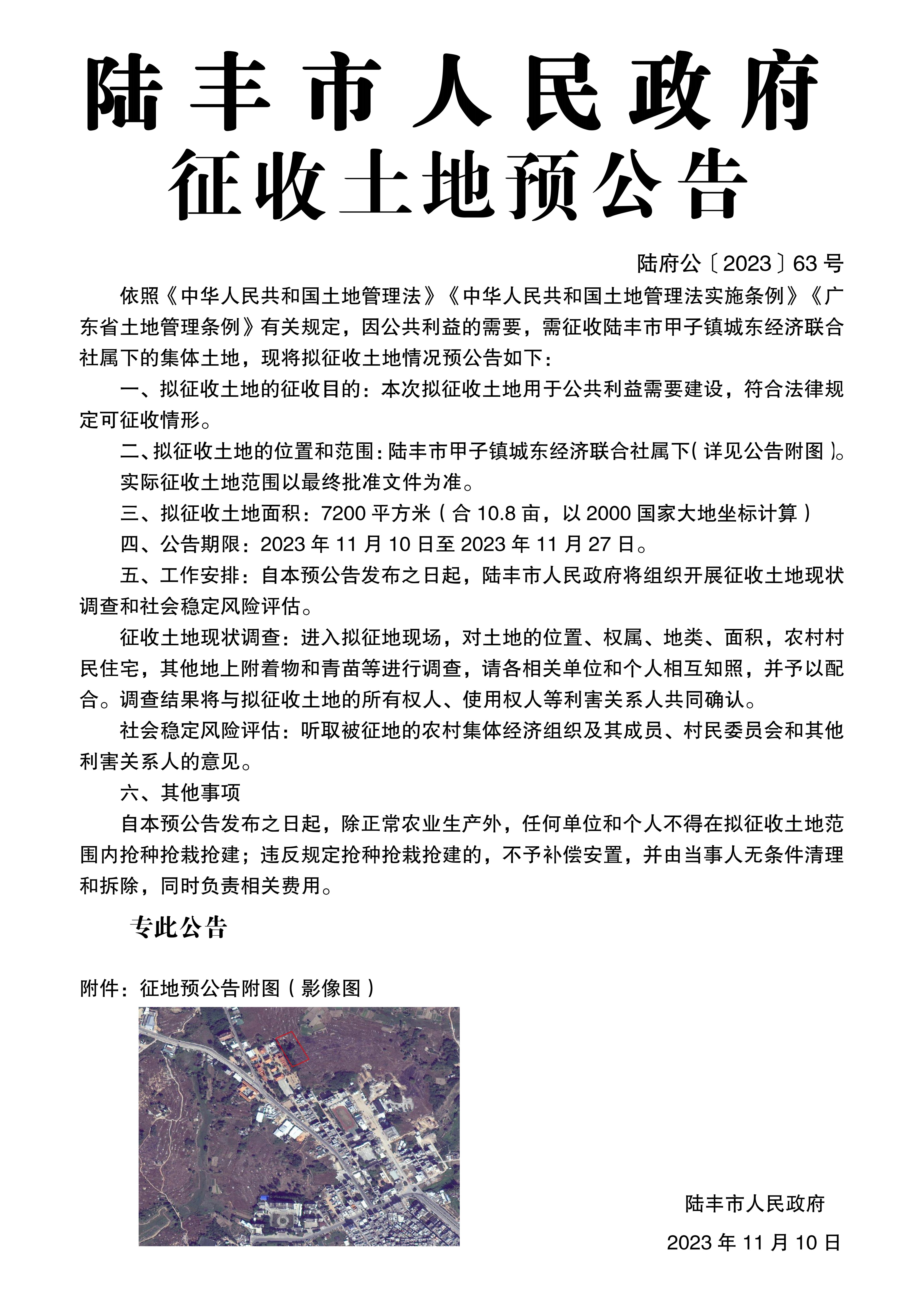 苹果直播 关于征收土地预公告(陆府公〔2023〕63号)