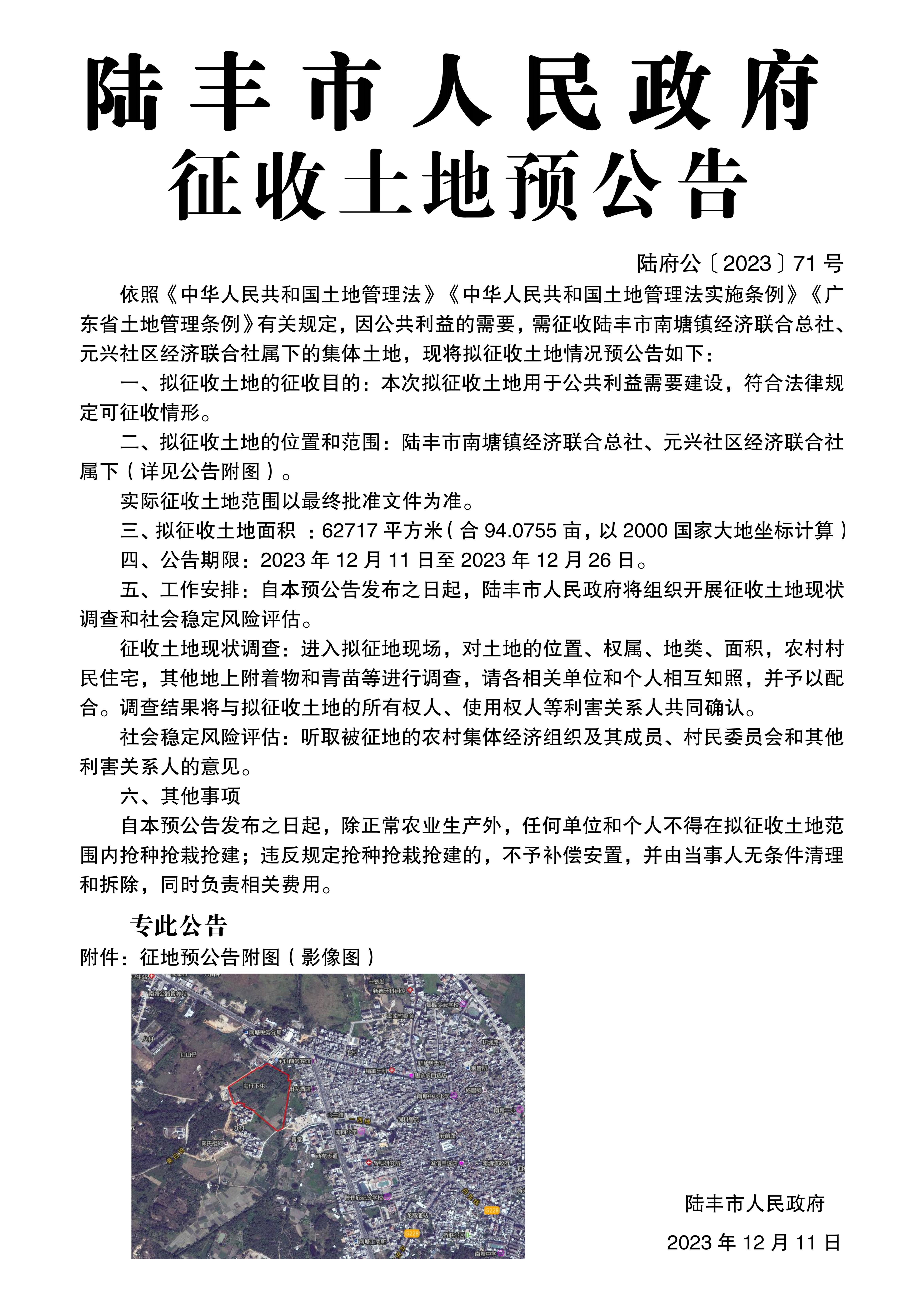 苹果直播 征收土地预公告(陆府公[2023]71号)