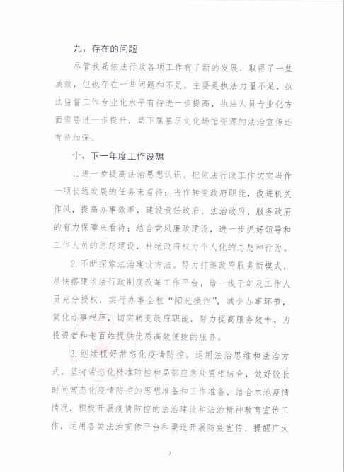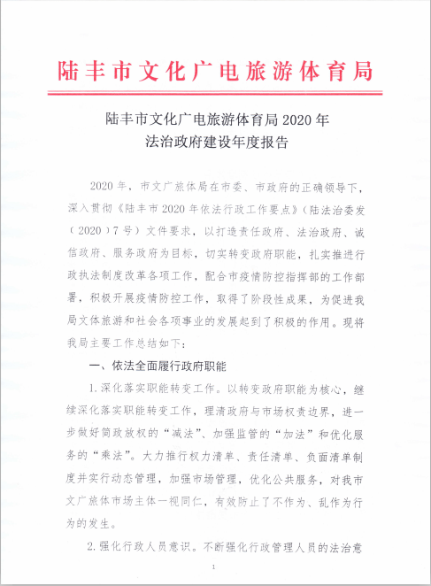 苹果直播 文化广电旅游体育局2020年法治政府建设年度报告