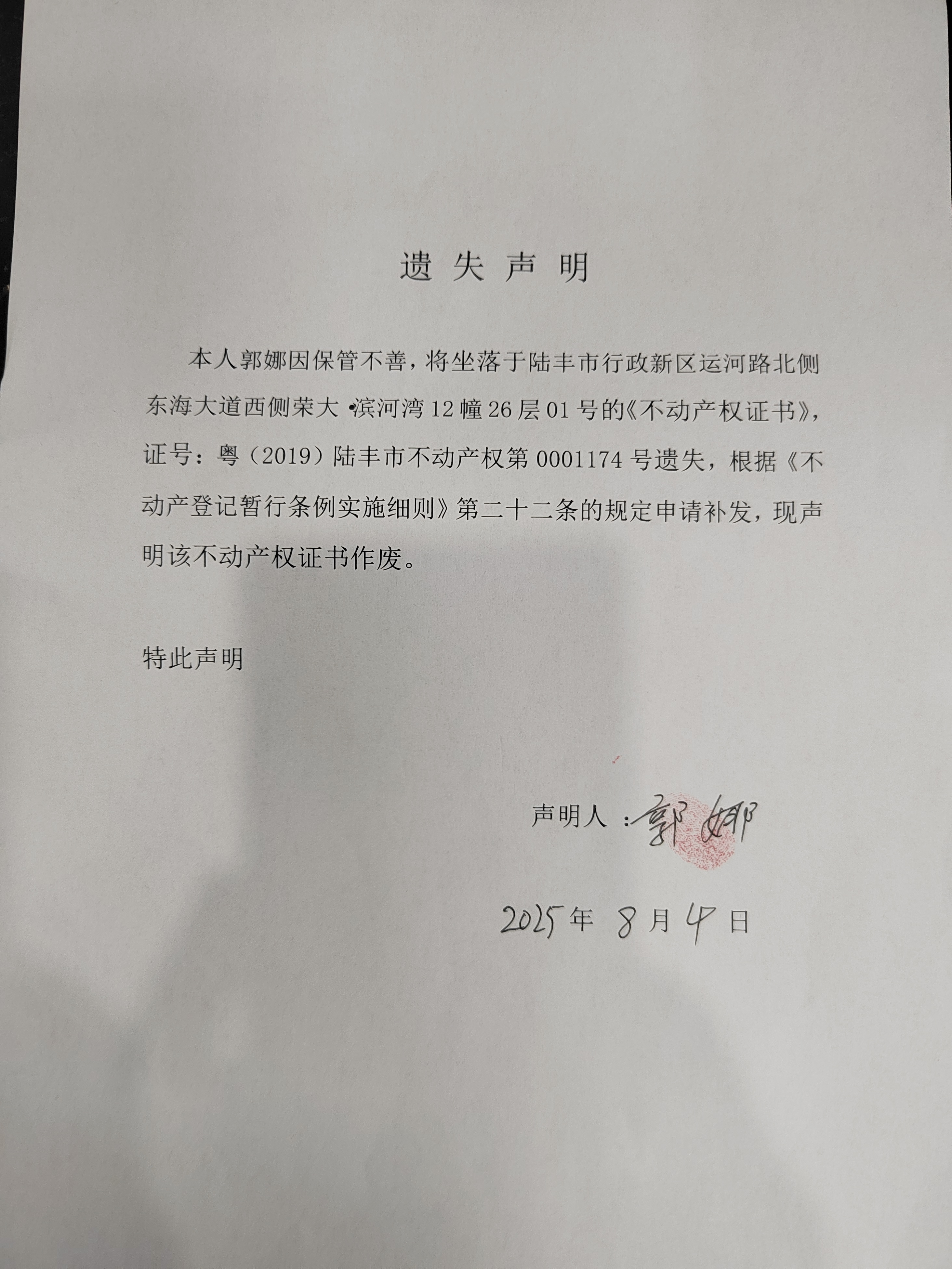粤(2019)苹果直播 不动产权第0001174号